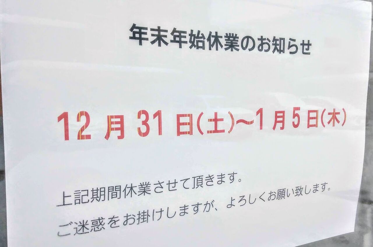 上記期間休業致します。ご迷惑をお掛けしますがよろしくお願いします。