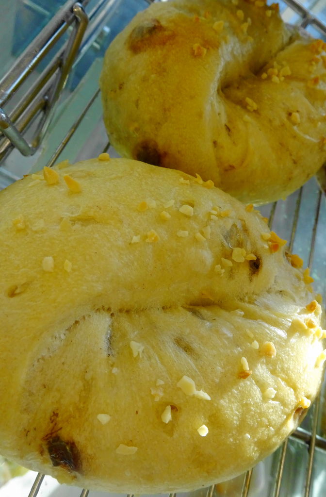 《バナナナッツベーグル》ドライバナナとアーモンドを生地に混ぜ込み、アーモンドをトッピングしました。