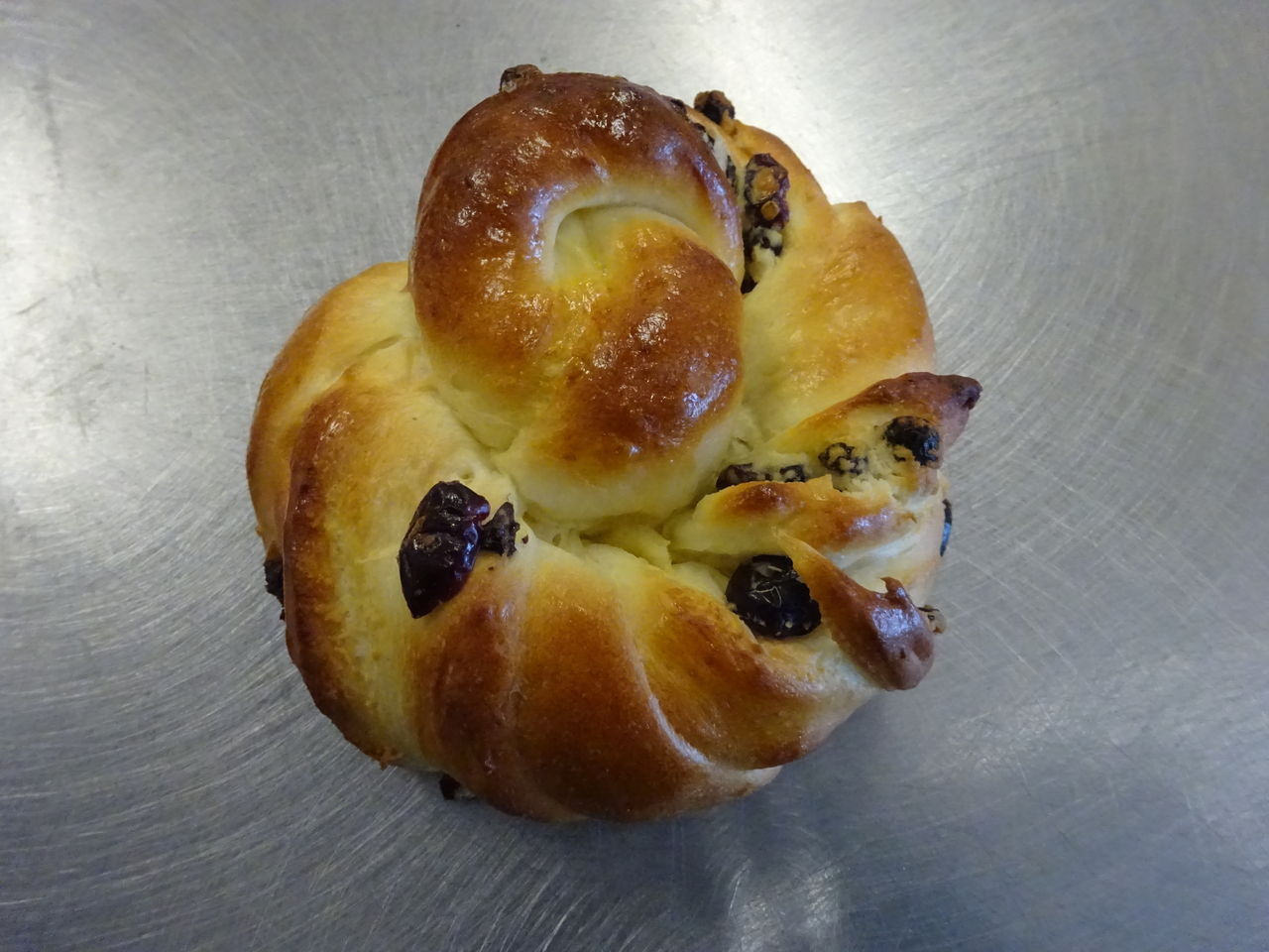写真は《クランベリーカレンツ》クランベリーと、カレンツ(小さい粒の干しブドウ)、そしてマジパンが入っているパンです♪