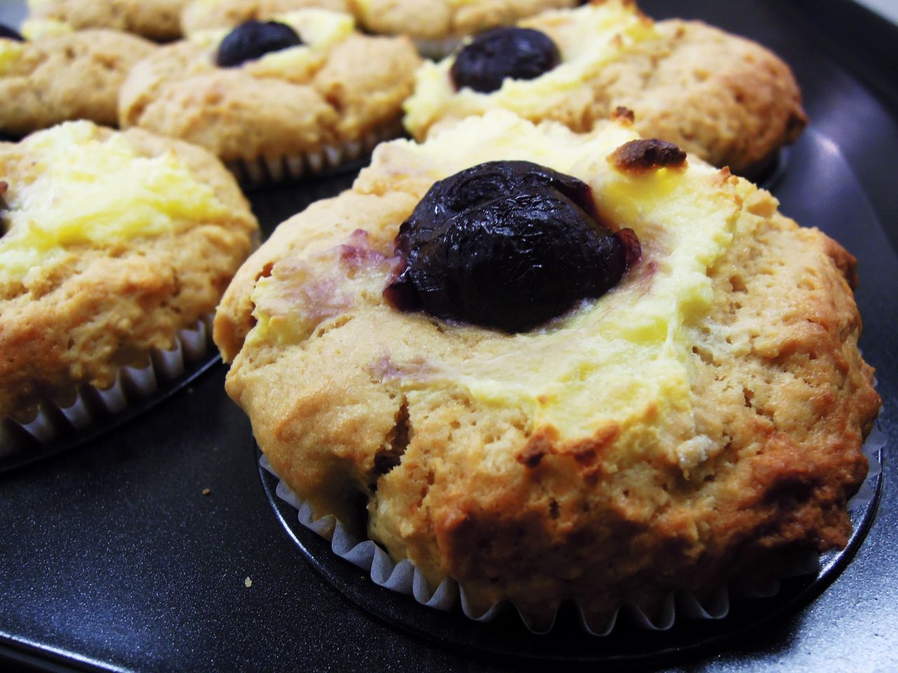 写真は新作のマフィン《ダークチェリーカスタード》☆彡